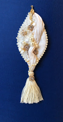 Thank you all for your comment on my heart pieces, following the hearts with black work and beading I wanted to see if I could use the same idea for a decoration, I had a shape in mind and thoughts on how I would divide it, first up was a play with silk and beads using the shape.